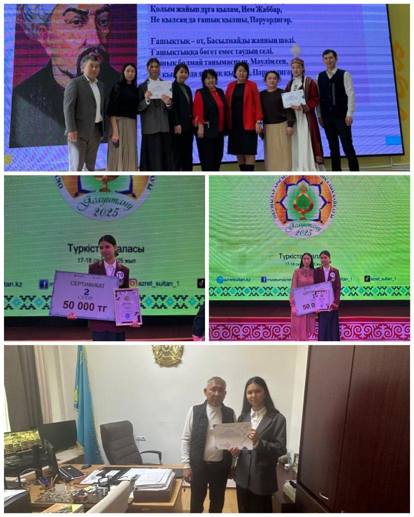 Алматы қаласы Білім басқармасының “Алматы дарыны” орталығының ұйымдастыруымен дәстүрлі “Ясауитану -2025” республикалық байқауы өткізілді. Байқауда өзінің ерекше дарындылығымен көзге түскен 9 “А” сынып оқушысы Әлімғазы Айкүнім қалалық кезеңге жолдама алды.2025 жылдың 18-наурыз күні Түркістан қаласында өткен оқушылар арасындағы республикалық “Ясауитану -2025” байқауында жоғары білім деңгейі мен зияткерлік қабілетін көрсетіп, II орынға иеленді.