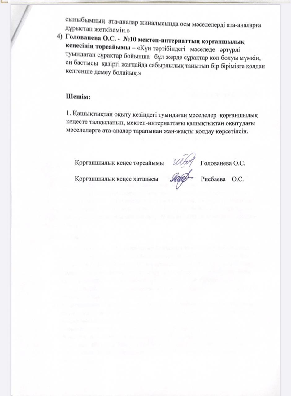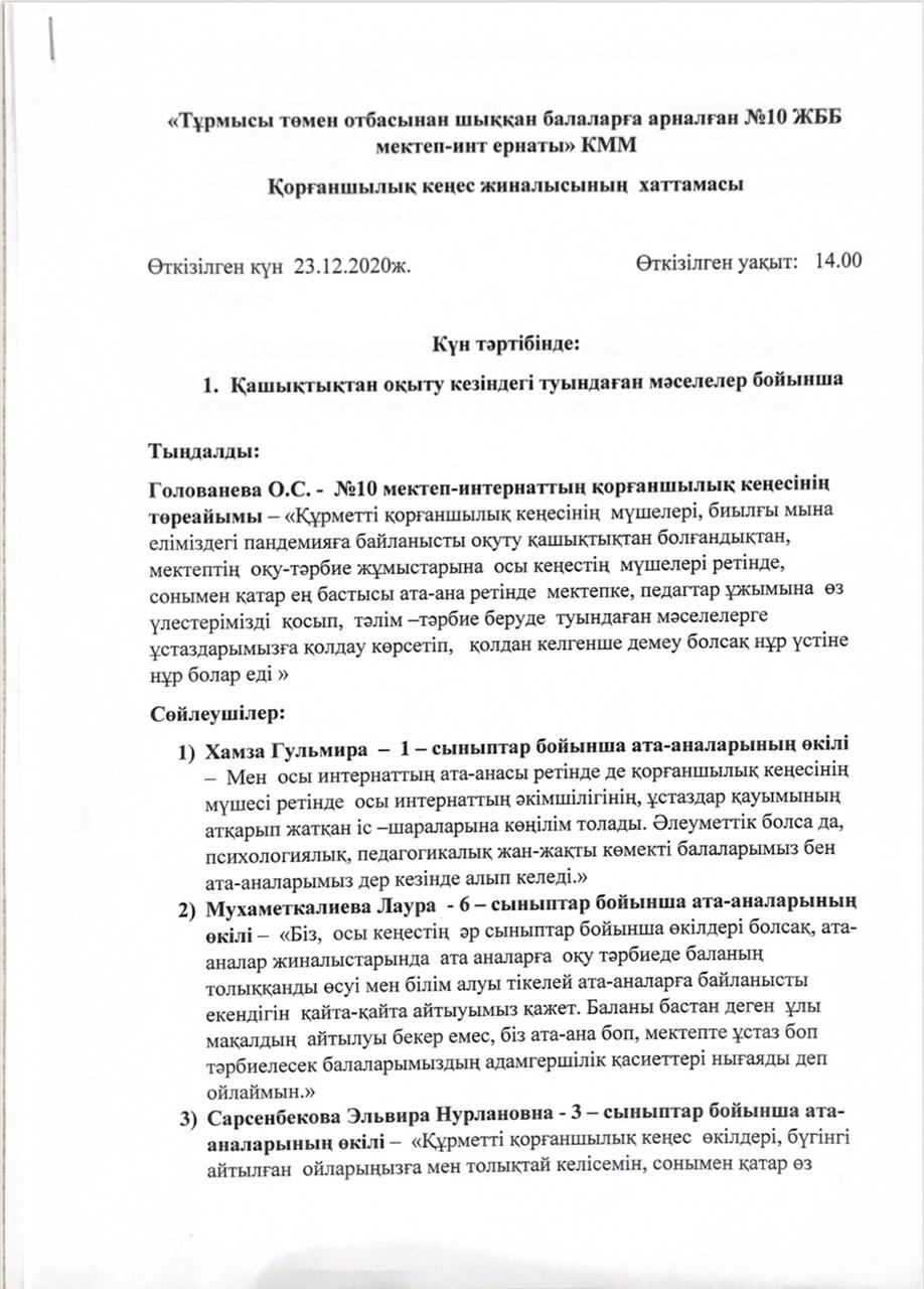 » ҚОРҒАНШЫЛЫҚ КЕҢЕС ЖИНАЛЫСЫНЫҢ ХАТТАМАСЫ