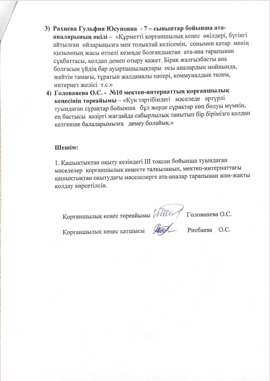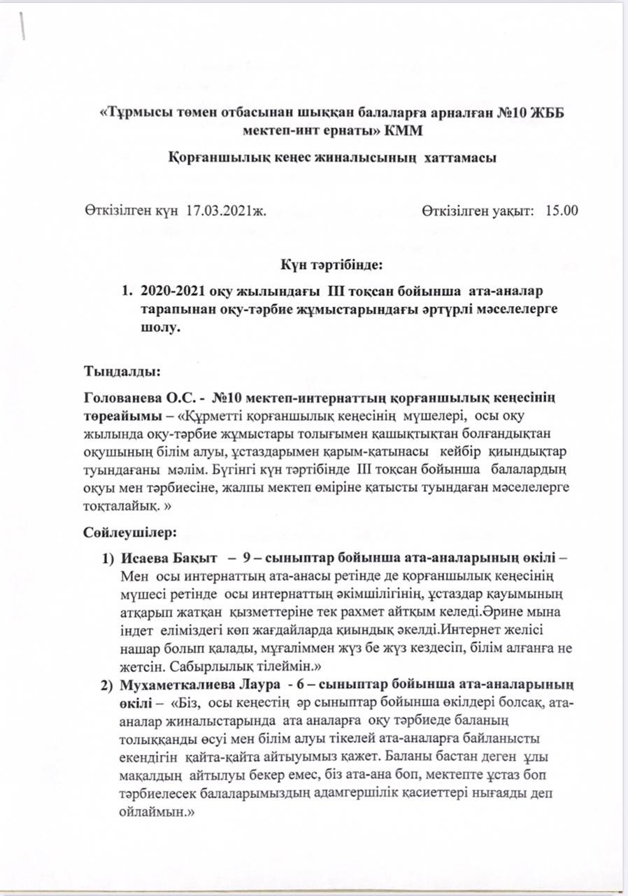 » ҚОРҒАНШЫЛЫҚ КЕҢЕС ЖИНАЛЫСЫНЫҢ ХАТТАМАСЫ