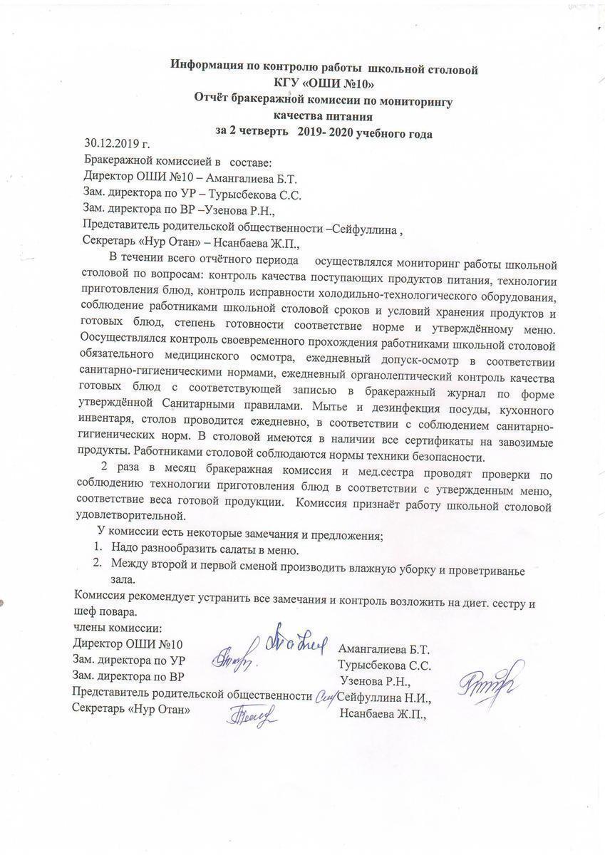 » Отчет бракеражной комиссии по мониторингу качества питания 31.12.2019 г.
