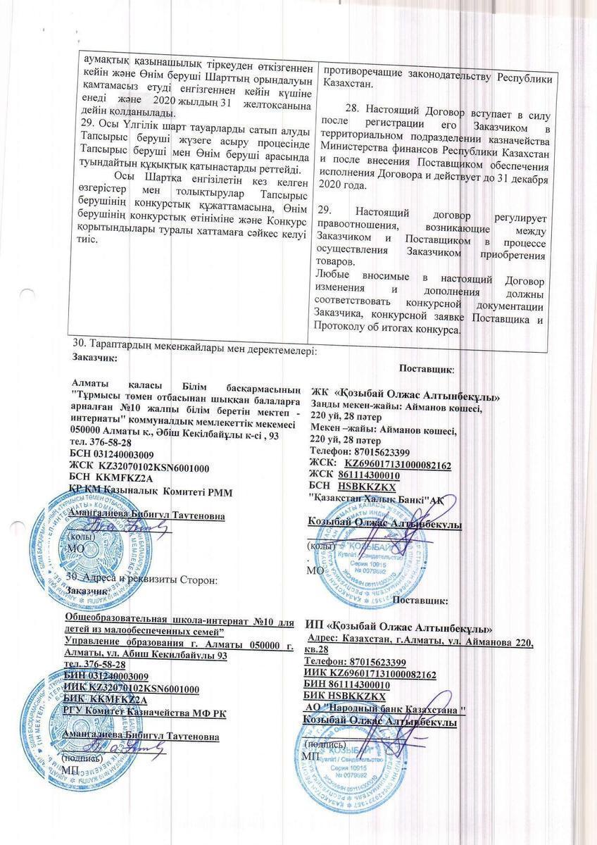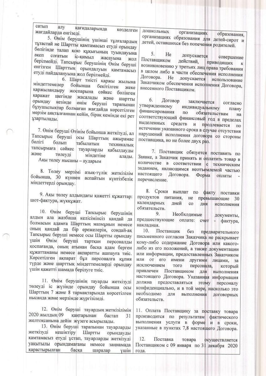 Договор ТОО "Уштобе-Айдын" на 2020 год