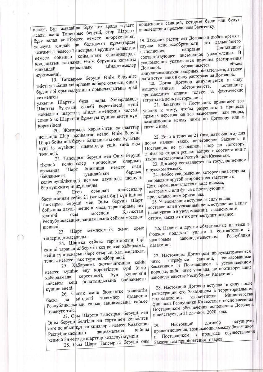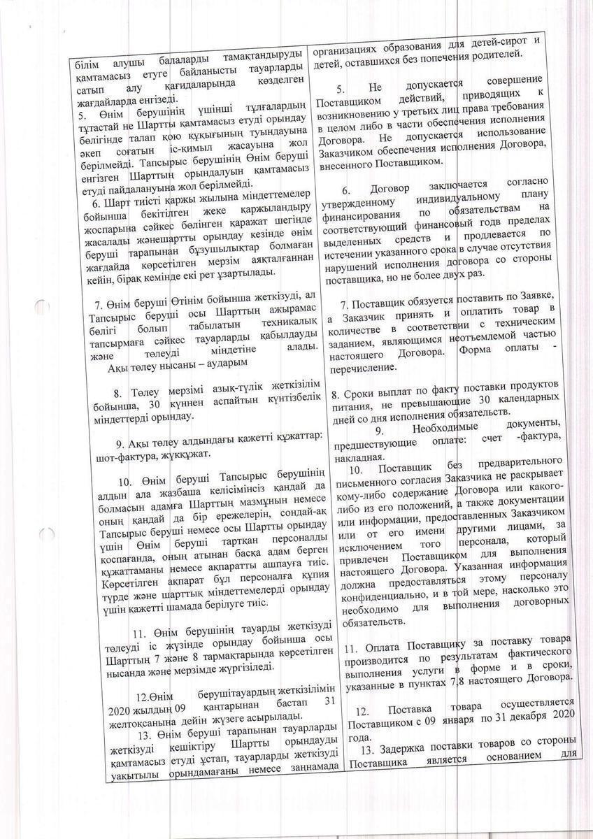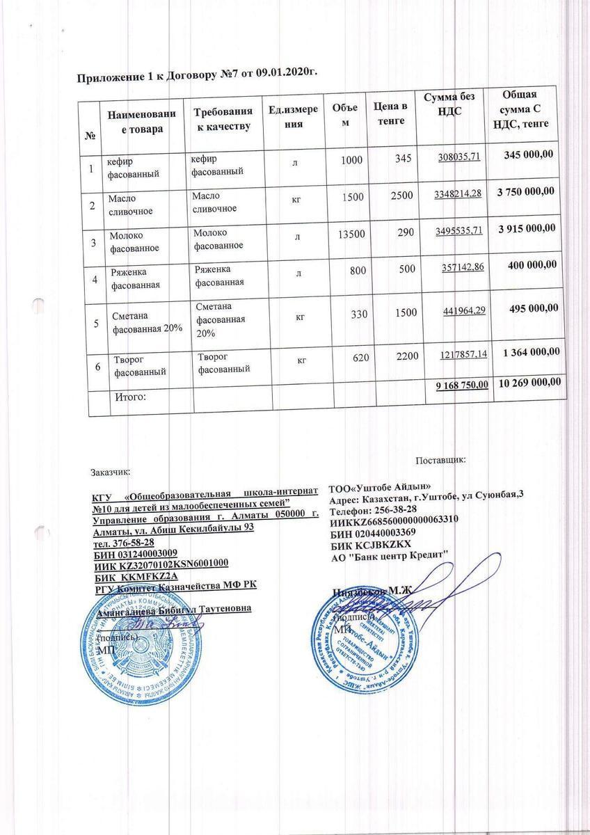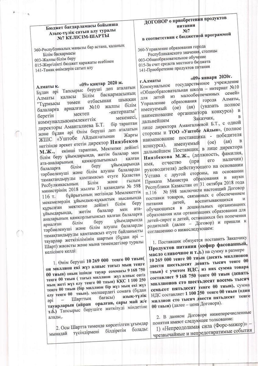 » Договор ТОО "Уштобе-Айдын" на 2020 год