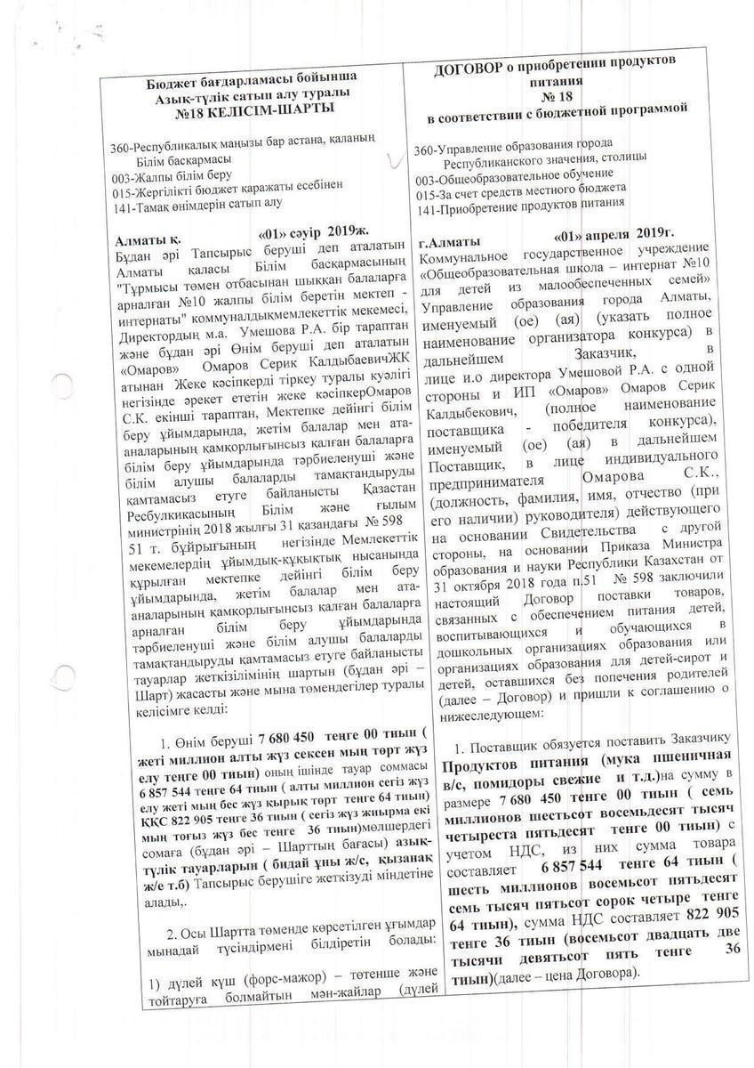 Договор ТОО Дары Осени на 2019г. 2