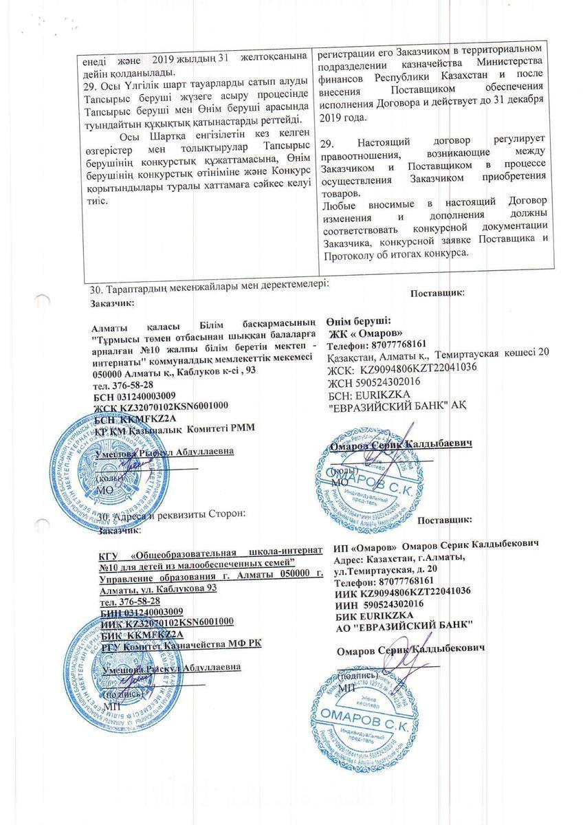 Договор ИП Омаров 2 на 2019г.
