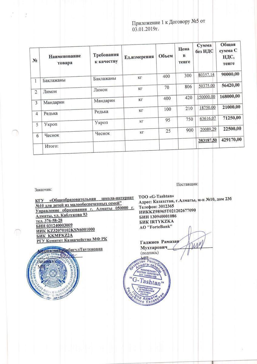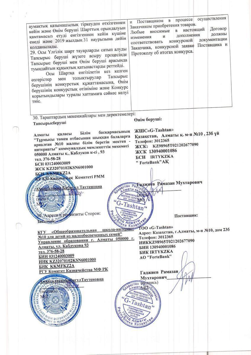 Договор ТОО G-Tashtan на 2019г